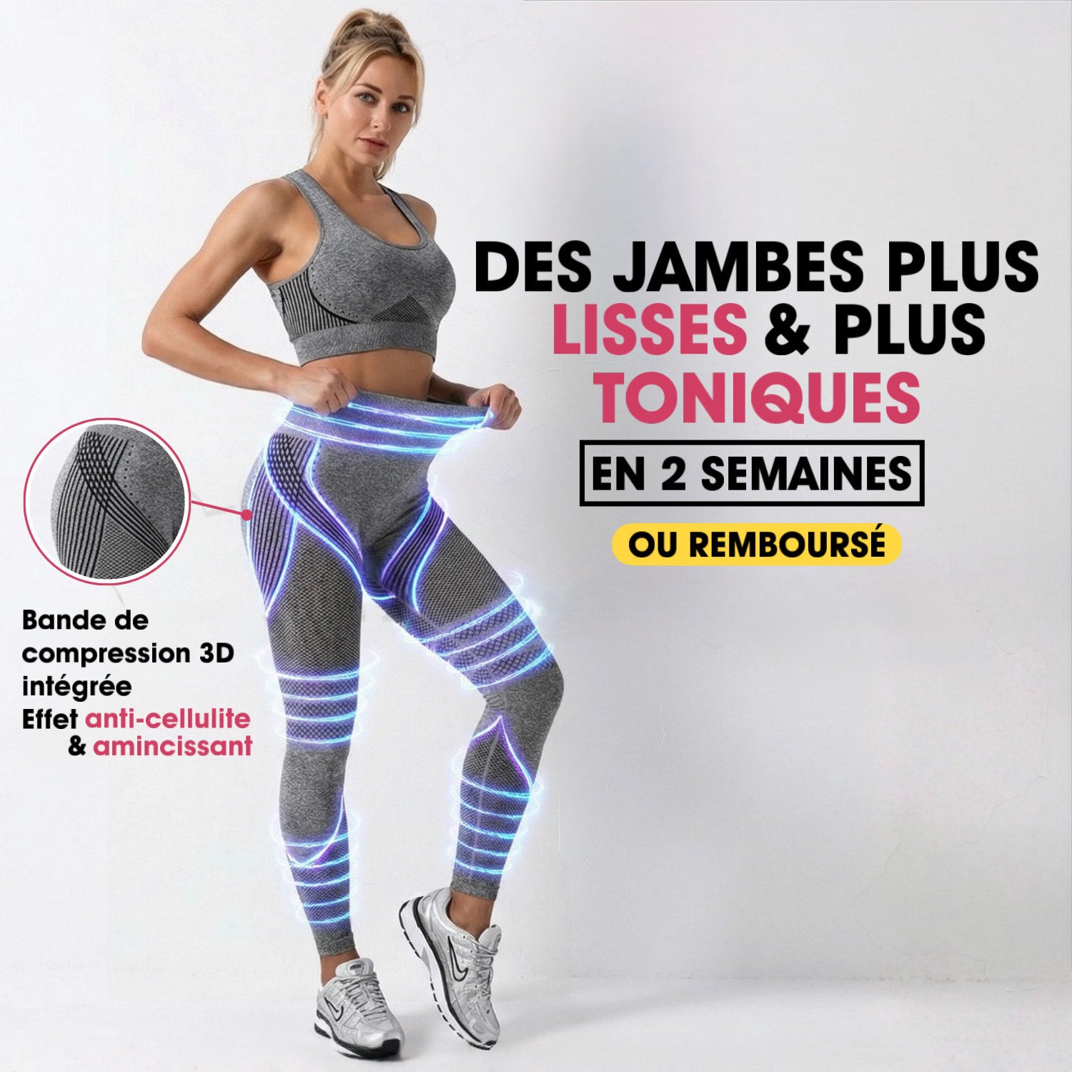 La compression 3D accompagne tes mouvements et peut favoriser une dépense énergétique plus active au quotidien.