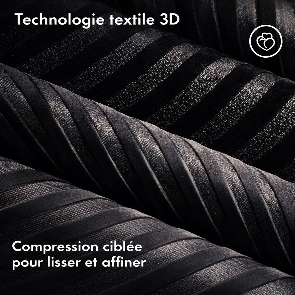 Le tissage 3D agit sur le rendu visuel : maintien ciblé, peau qui paraît plus lisse au fil des ports.